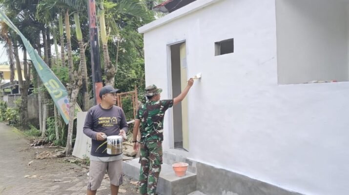 Semangat gotong royong terlihat saat anggota Satgas TNI Manunggal Membangun Desa (TMMD) Ke-127 Kodim 0819/Pasuruan bersama warga menyelesaikan tahap finishing rehabilitasi Rumah Tidak Layak