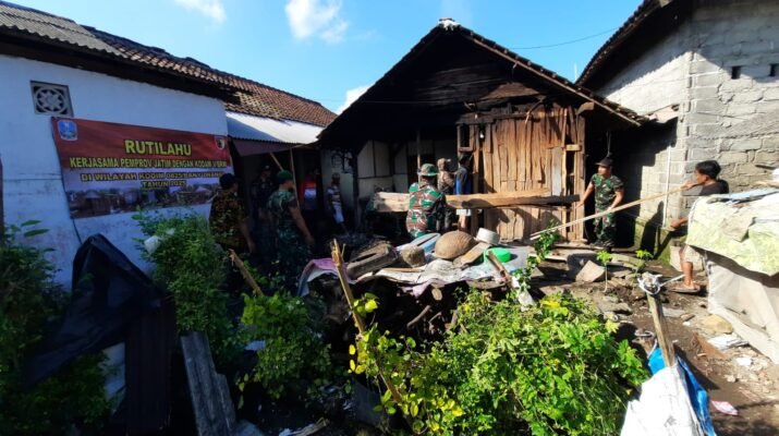 Anggota Posramil 0825/23 Tegalsari Bantu Warga Bongkar Rumah Ibu Parni