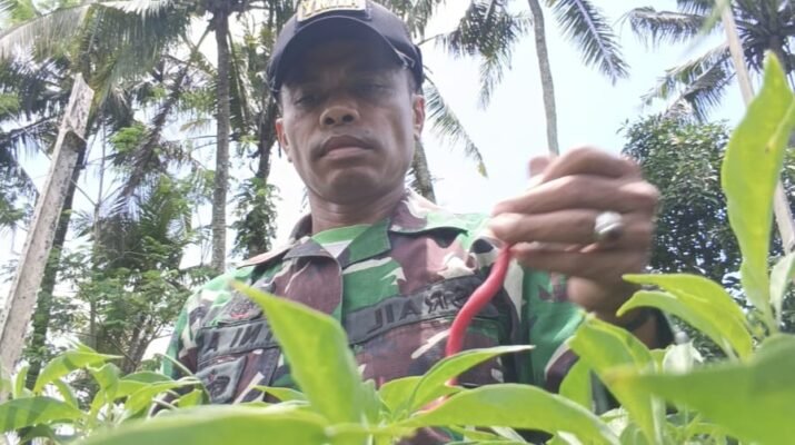 ‎“Panas dan lelah itu biasa, tapi melihat warga tersenyum dan hasil panen melimpah, rasanya semua terbayar,” kata Serda Israil sambil menata cabai di keranjang bambu.