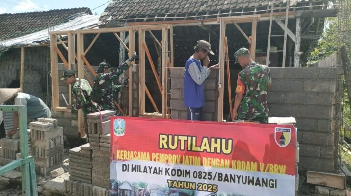 Koramil 0825/13 Singojuruh menunjukkan keseriusan dan kecepatan dalam pelaksanaan pembangunan Rumah Tidak Layak Huni (RUTILAHU) di wilayahnya pada hari Kamis, 7-8-2025. Kegiatan ini dilakukan dengan gotong royong antara anggota Koramil dan warga setempat.