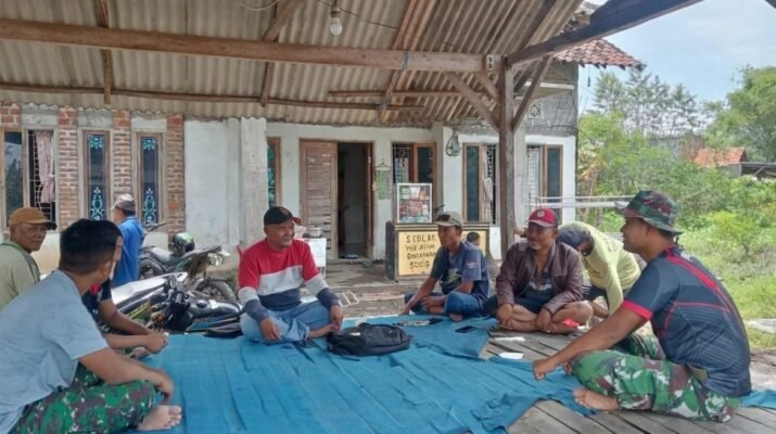 Di antara mereka tampak Kopda Fery, prajurit muda dengan seragam loreng yang masih berdebu, duduk berdampingan dengan para bapak desa. Salah satunya Bapak David, warga senior yang rumahnya dekat lokasi rehabilitasi RTLH, terlihat antusias mengikuti perbincangan.