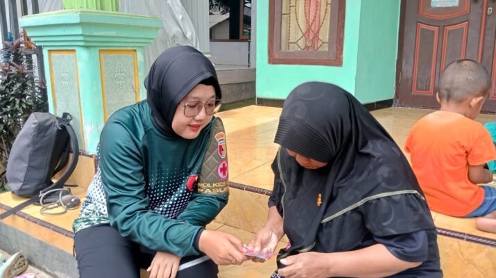 Di sekitar lokasi, anak-anak tampak penasaran melihat peralatan medis yang digunakan. Sementara itu, suasana kampung yang sederhana dengan rumah-rumah warga menjadi latar kehangatan pelayanan kesehatan yang diberikan langsung di tengah masyarakat.