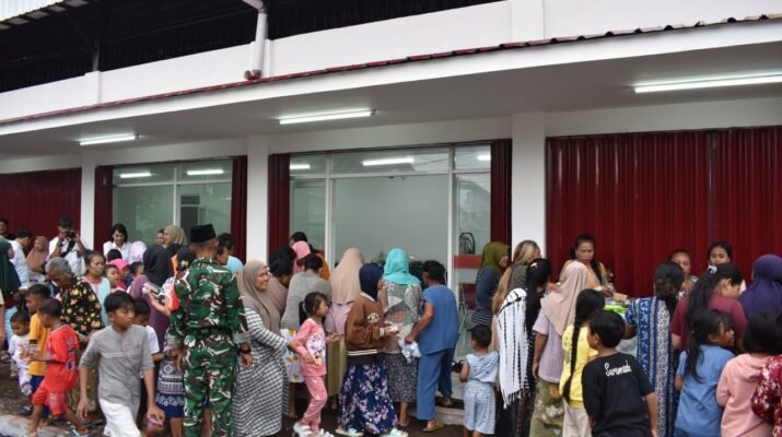 BANYUWANGI – Semangat kebersamaan dan kepedulian mewarnai kegiatan ngabuburit “bagi-bagi ta’jil” yang digelar di Dusun Kedunen, Desa Bomo, Kecamatan Blimbingsari, Kabupaten Banyuwangi, Minggu (01/03/2026). Kegiatan yang dimulai pukul 15.00 WIB di area KDKMP tersebut tidak hanya menjadi momen berbagi menjelang berbuka puasa, tetapi juga dirangkai dengan doa bersama dan tasyakuran atas selesainya pembangunan KDKMP Desa Bomo. Hadir dalam kegiatan tersebut antara lain Dandim 0825/Banyuwangi Letkol Arm Tryadi Indrawijaya, M.H., S.I.P, Kapolsek Rogojampi Kompol Imron, S.H., M.H., Danramil 0825/12 Rogojampi Kapten CKe Guntur, unsur Forkopimka Blimbingsari, tokoh agama, serta tokoh masyarakat setempat.