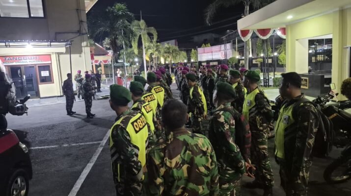 BANYUWANGI – Soliditas TNI dan Polri kembali ditunjukkan melalui patroli gabungan skala besar yang digelar di wilayah hukum Polresta Banyuwangi, Minggu (31/8/2025) malam. Ratusan personel gabungan dari Polresta Banyuwangi, Kodim 0825, Lanal Banyuwangi, serta Puslatpurmar 7 Lampon, diturunkan untuk mengamankan wilayah dan memberikan rasa tenang kepada masyarakat.