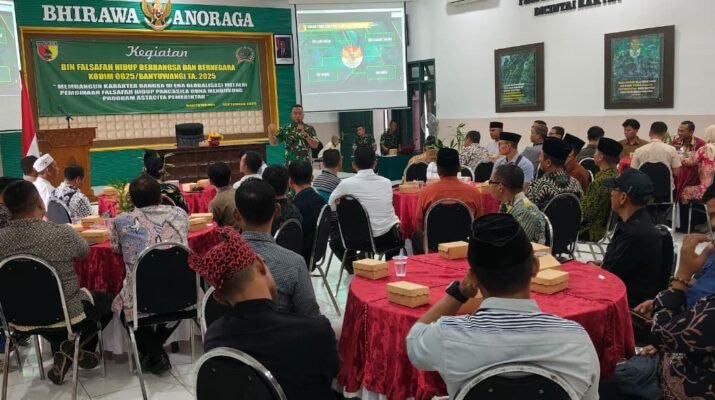 Banyuwangi – Kapten Czi Sahar Susanto mewakili Dandim 0825/Banyuwangi memimpin kegiatan Pembinaan Falsafah Hidup Berbangsa dan Bernegara TA 2025 di Aula Makodim 0825, Selasa