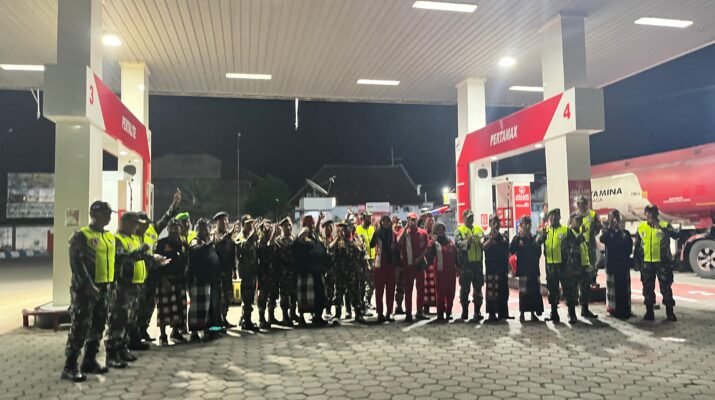 Koramil Bangorejo Bersama Banser dan Pecalang Gelar Apel Malam Siaga Gabungan