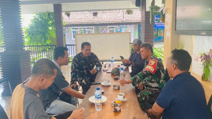 LICIN – Komandan Posramil (Danposramil) 0825/22 Licin Peltu Eman Sukmana dan Babinsa Desa Tamansari Sertu Mokhamad Dardiri Nurdin melaksanakan kegiatan komunikasi sosial (Komsos) dan