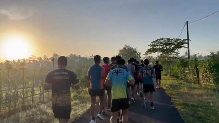 Siliragung, 15 Agustus 2025 – Anggota Satgas TNI Manunggal Membangun Desa (TMMD) ke-125 Kodim 0825/Banyuwangi melaksanakan kegiatan olahraga lari untuk menjaga stamina dan kesehatan