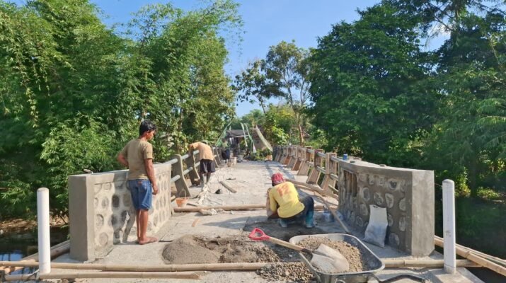 Banyuwangi – Program TNI Manunggal Membangun Desa (TMMD) ke-125 Kodim 0825/Banyuwangi terus menunjukkan progres nyata. Salah satunya pembangunan gapura jalan menuju jembatan di Desa