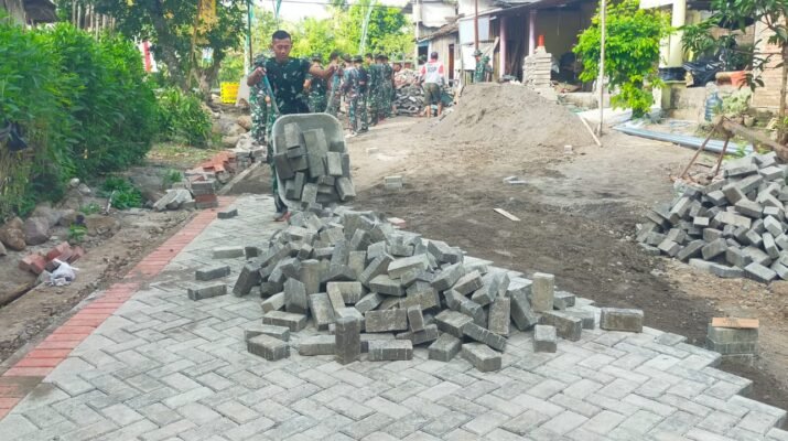 Banyuwangi – Satgas TNI Manunggal Membangun Desa (TMMD) ke-125 Kodim 0825/Banyuwangi terus melanjutkan pengerjaan paving jalan menuju jembatan penghubung di wilayah Kecamatan Siliragung, Kamis