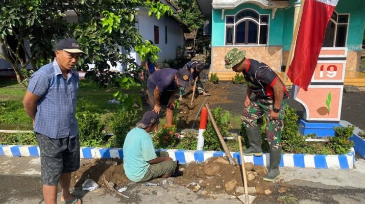 Satgas TMMD 126 Lebakharjo Kejar Penyelesaian Pembuatan Drainase di Dusun Krajan 1B