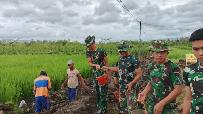 BANYUWANGI – Dalam semangat kebersamaan TNI dan rakyat, Bintara Pembina Desa (Babinsa) dari Pos Koramil (Posramil) 0825/24 Siliragung, bersama anggota Satuan Tugas (Satgas) TNI