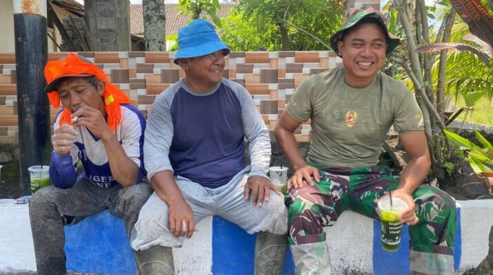 Kebersamaan dan keakraban antara anggota Satgas TNI Manunggal Membangun Desa (TMMD) ke-126 Kodim 0818/Malang-Batu dengan masyarakat Desa Lebakharjo tampak begitu nyata di sela-sela waktu
