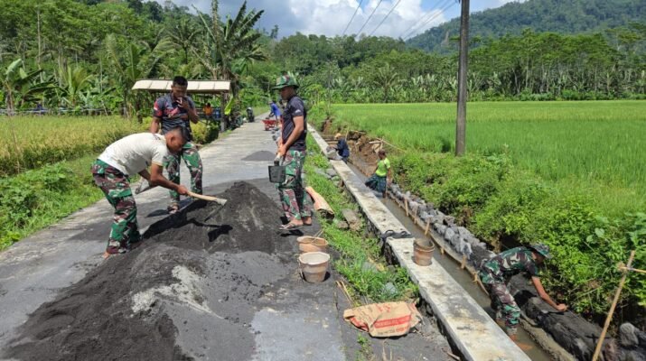 Semangat gotong royong dan dedikasi tinggi menjadi pemandangan sehari-hari di Desa Lebakharjo, Kecamatan Ampelgading, Kabupaten Malang, seiring berjalannya Program TNI Manunggal Membangun Desa (TMMD)