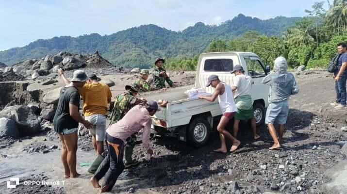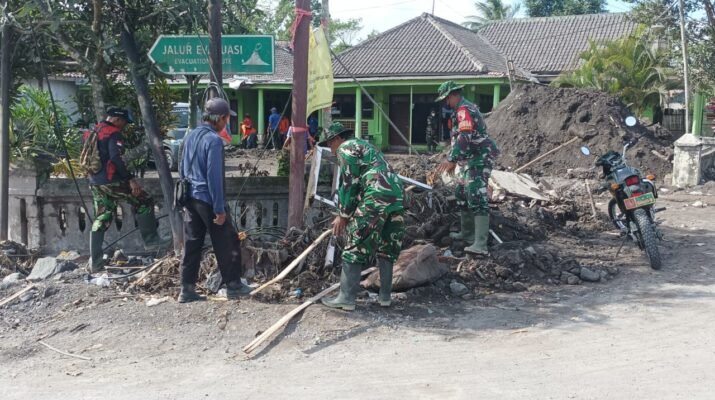 Lumajang – Upaya percepatan pemulihan pasca erupsi Gunung Semeru terus dilakukan oleh jajaran TNI. anggota Kodim 0821/Lumajang yang dipimpin Peltu M. Sholeh turun langsung