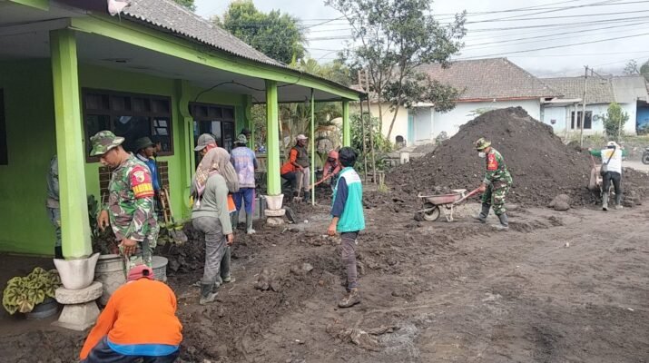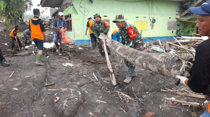 Lumajang – Upaya pemulihan pascaerupsi Gunung Semeru kembali diperkuat melalui aksi nyata para personel TNI yang tergabung dalam Kodim 0821 Lumajang dan Yonif 527/BY,